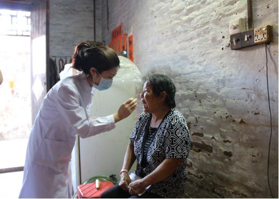 穗华口腔医院医生夏丽梅为邓阿姨检查牙齿
