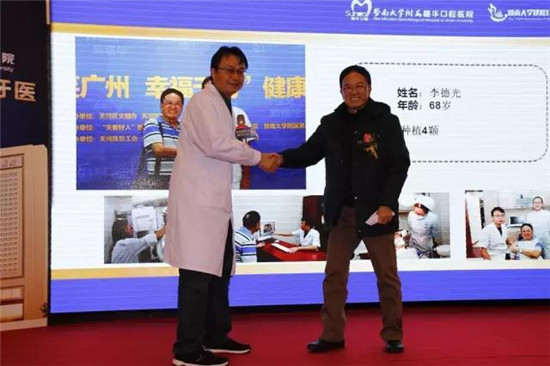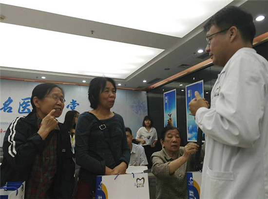 在现场,来自天河区员村一横路贾爷爷告诉记者,他两年前到穗华口腔医院找张春雷博士种了三颗牙,就是按照他讲的进行保养检查的,每次医院组织活动,他都过去听一听,到医院听一次课等于将保养知识重温一次。他说自己知道种植牙可以咬硬东西,自己尽量少咬过硬的东西。今年80多岁了,种植牙后让自己看上去像60多岁的老人。在现场的梁阿姨找张博士种了满口牙,她说:“穗华口腔医院专家好、工作人员服务态度好,我种植了8颗牙,目前都很好,每次到穗华口腔医院,专家都会帮我检查一下,工作人员会及时了解她的情况,让我很感动!”