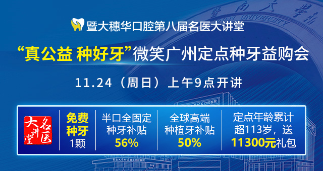 主题:穗华口腔第八届名医大讲堂之“真公益∙种好牙”微笑广州定点种牙益购会